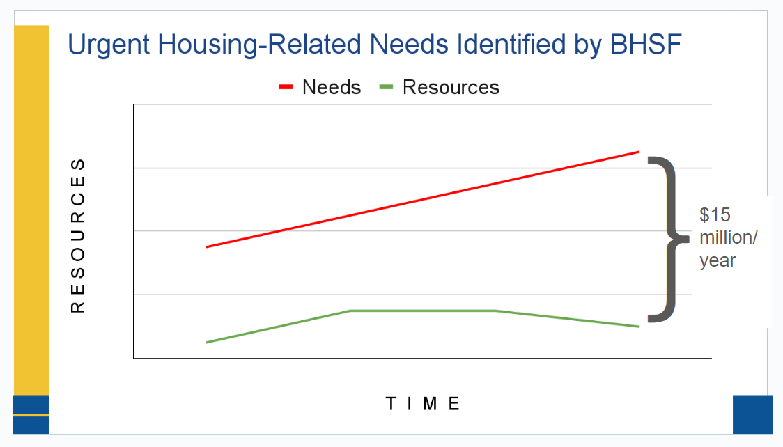 The task of our Task Force, if you will, is to pursue new sources of funding to close our community’s collaboratively identified, $15 million-per-year gap in services and staffing.